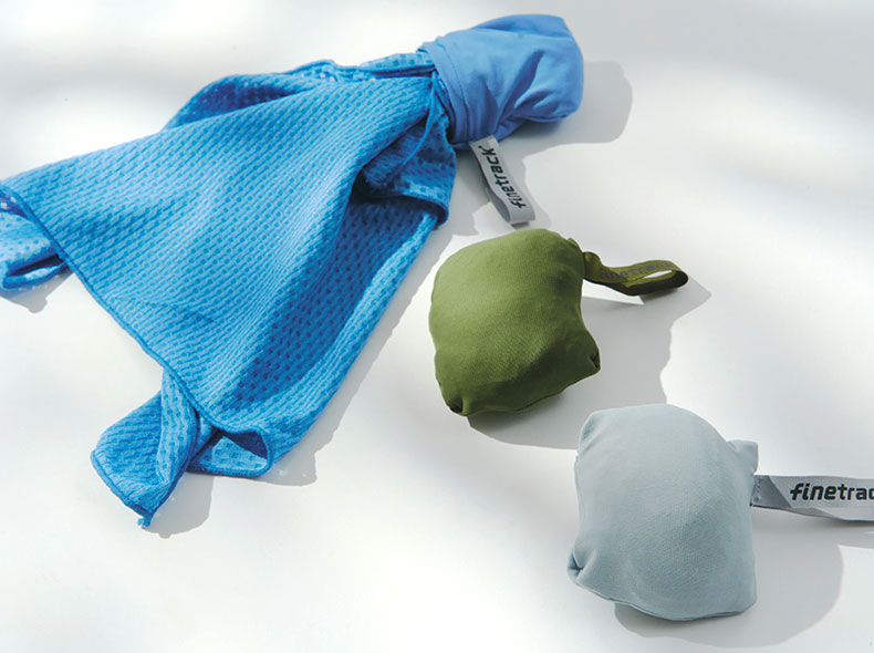 そんな悩みの解決案としてfinetrackが提案するのが、水で濡らすだけで汚れ落としもできるアウトドアタオル「ピカタオル/ピカハンカチ」の携行です。