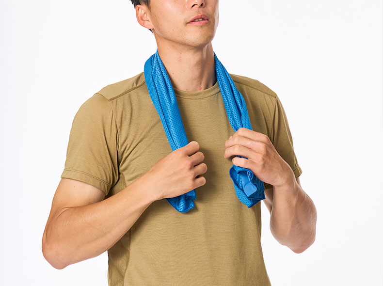タオルに水を含ませて首に巻けば、気化熱による冷却効果を得られる