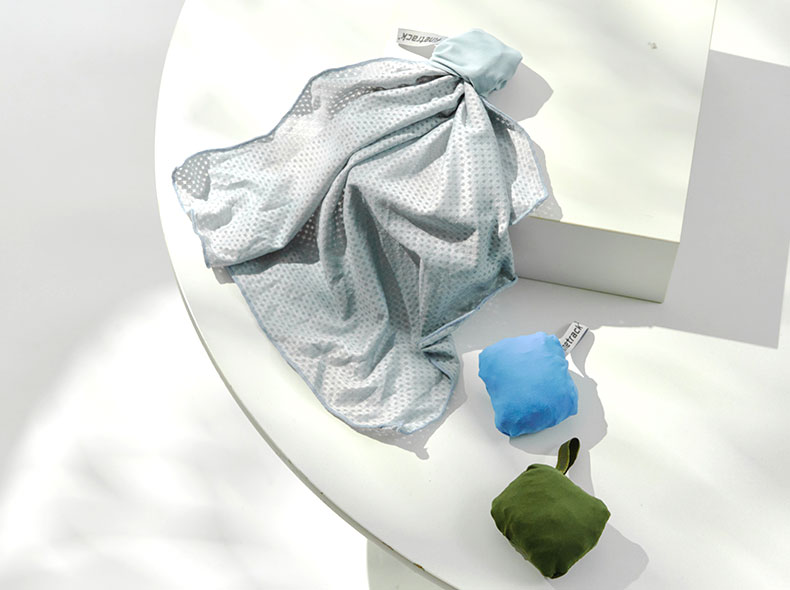 水だけで汗や皮脂汚れをすっきり落とすことができ、タオル・ハンカチと一体型の収納袋は素早く、簡単に収納することができます。