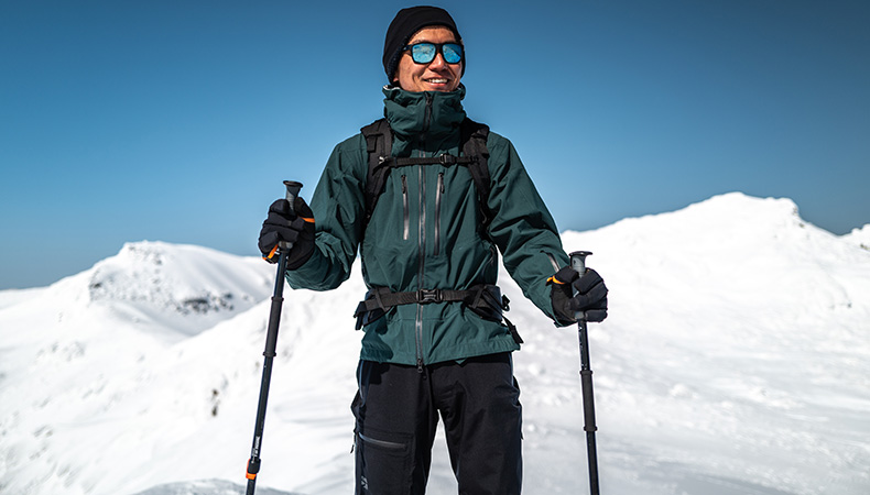 限られた雪のシーズンに、1着のハードシェルで”登り”から”滑り”まで、さまざまな遊びをボーダーレスに楽しめるように多彩な機能を盛り込んでいます。