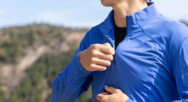 薄手ながらも肌映りしにくく、メンズのジップTで100g、シンプルなTシャツモデルはわずか80gという驚異的な軽さを実現しています。