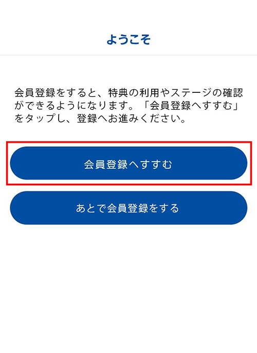「会員登録へすすむ」をタップする。
