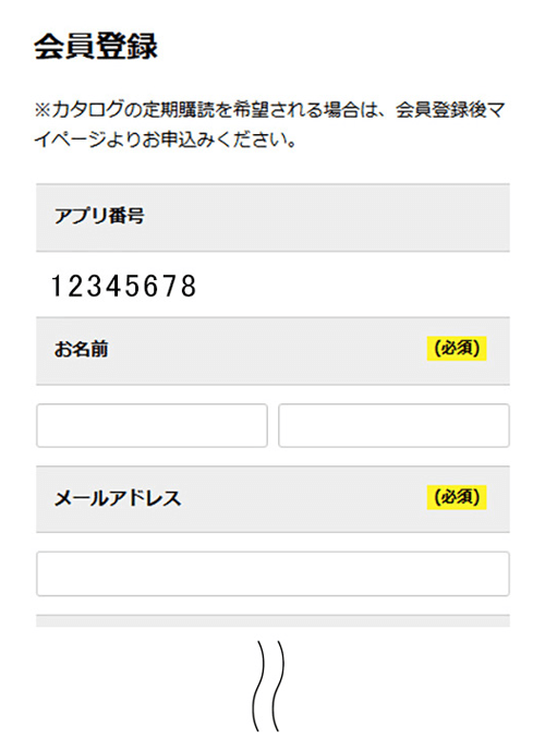 お名前/メールアドレスなどお客様の情報を入力および個人情報保護方針を確認して登録する。