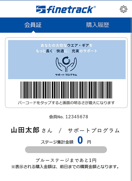 サポートプログラム会員証画像とお客様のお名前が表示されていれば完了です。