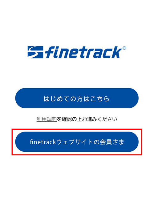 「finetrackウェブサイトの会員様」をタップする。
